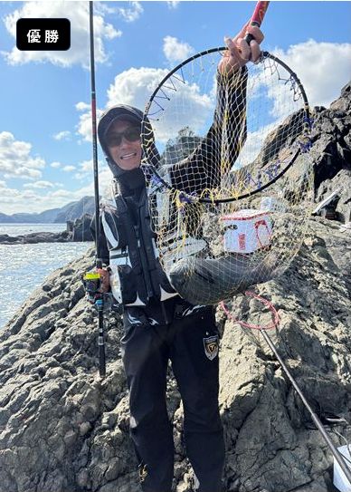 優勝は唯一4kgオーバーの結果を出した城本支部長。優勝インタビューでは、使用ウキ(プログレスグレ)や狙い方などの質問が飛び交い、笑顔の絶えない表彰式となりました。1位~3位の方は大分県支部所属の木村インストラクターが監修したプログレスグレを使用し上位を占めていました。今後皆さんにとって、良いアイテムの一つになると思いました。