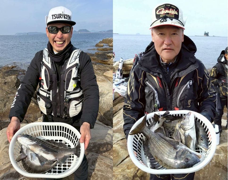 朝方は気温が低く肌寒かったですが陽が昇ると風の影響もなく絶好の釣り日和で多少場所ムラはありながらもほとんどの磯で釣果があり全体的によく釣れていました。