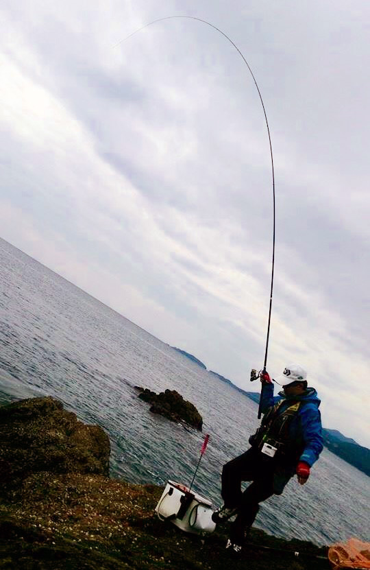 本命ポイントは他客へ譲り、右手からの竿出し。最初はエイジアマスターピース02での完全フカセで 釣り開始するが、右手のサラシが強く仕掛けの馴染みが悪い。手前では小型の尾長が2ヒロ前後であたるものの、中間距離からはツケエが残る。そこでG5を追加し、同調しやすい様に広範囲に多めのマキエを撒くと、浅棚では小型の尾長とイズスミがあたり、通過すると竿2本前後でクチブトのアタリがでた。